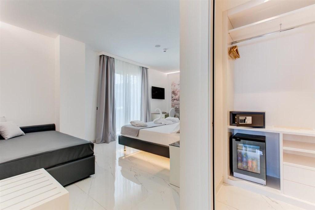 zařízeny a mají boční výhled na moře. Hotel, který prošel nedávnou